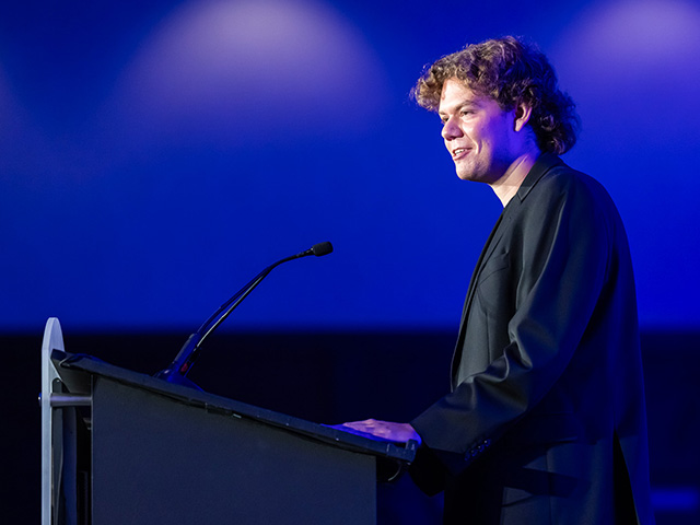 まずは、本大会を主催するCertiportのTy Kenworthy氏の挨拶からスタート。その後、Pearson社のKrista Ketchmark氏、過去の世界学生大会に出場したKai Charvet氏とJacob Sedesse氏が登壇しました。